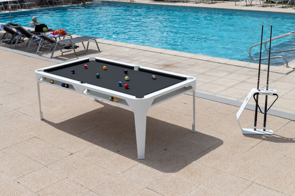 Hyphen pa ni le biljard miza. Z dodatno ploščo jo lahko enostavno spremeniš v elegantno jedilno mizo, kar jo naredi popolno za sodobne zunanje prostore, hotele ali zasebne terase.