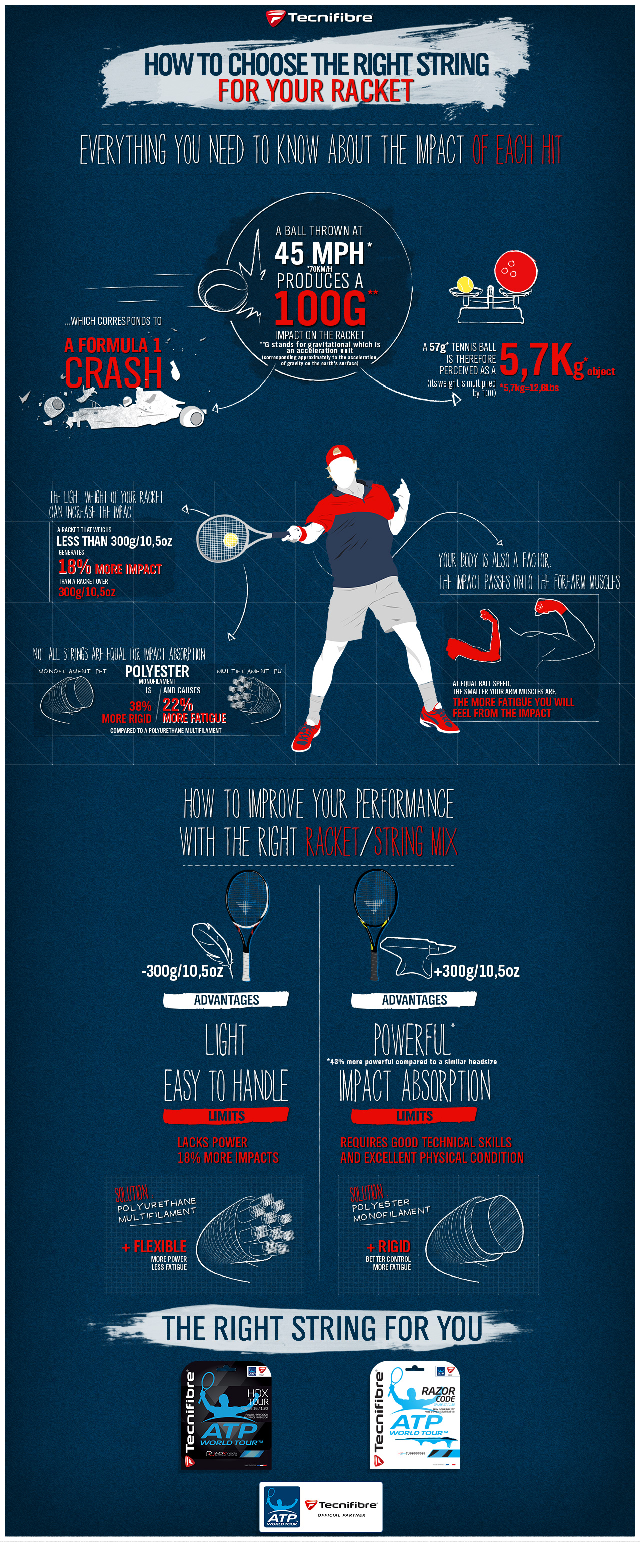 Za začetek si lahko ogledate priloženo sliko/plakat, ki ga je pripravil Tecnifibre in prikazuje različne vplive in rešitve.