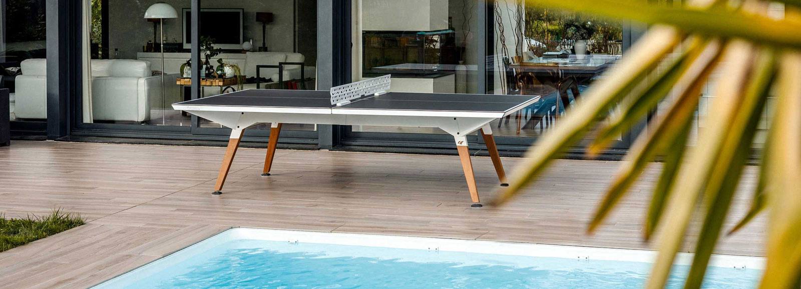 Očarajte se z mizo, ki združuje svetove vrhunskega pohištva in namiznega tenisa s svojimi vrhunskimi materiali, ikoničnim dizajnom in odlično stopnjo končne obdelave. Ta model ima narisane črte za igranje namiznega tenisa, lahko pa izberete tudi takšno, ki je v osnovi brez črt.