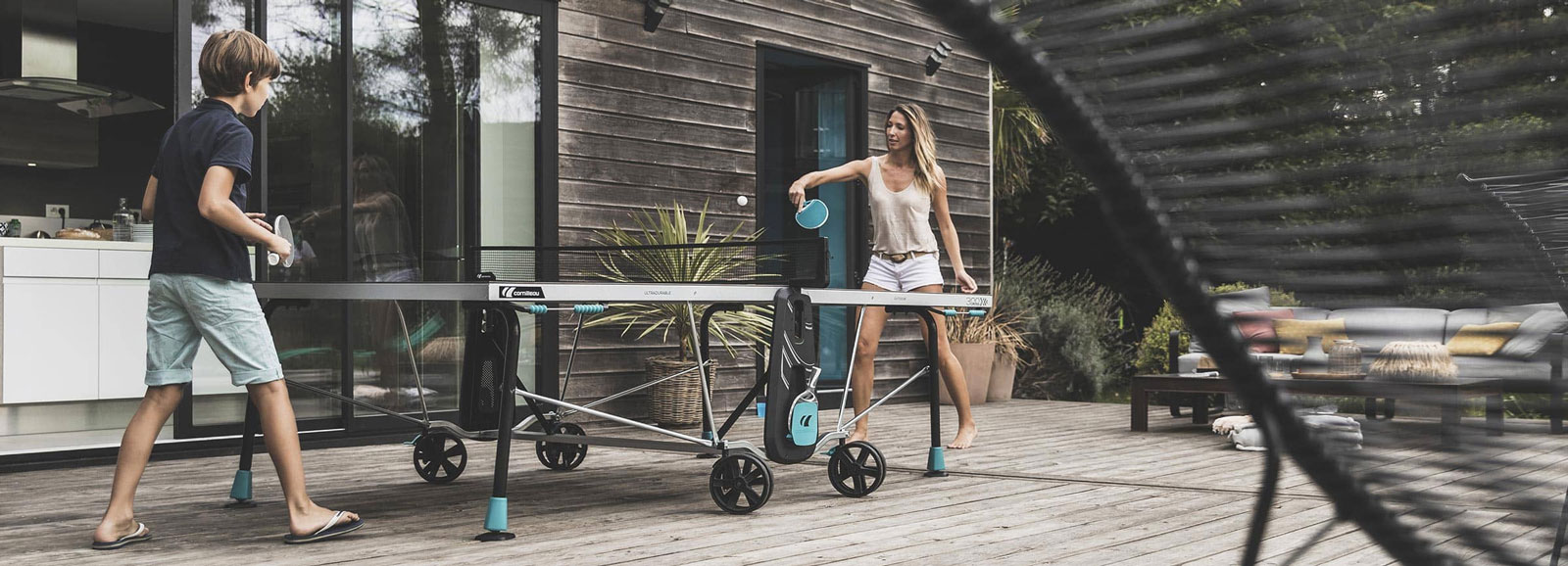 Zunanja namizno teniška miza Cornilleau 300X Crossover je idealna za družinsko rekreacijo.